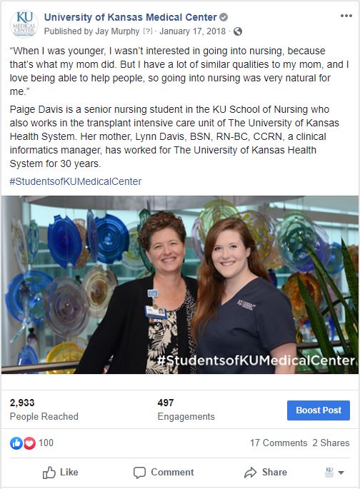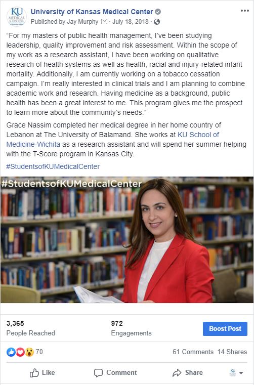 The University of Kansas Medical Center has more than 50 social media accounts managed by various users across campus. To provide guidance on how to follow the KU brand as well a general best practices, I created a social media guide. You can learn more about my social media management philosophy by pursuing the guide, just click the image below.