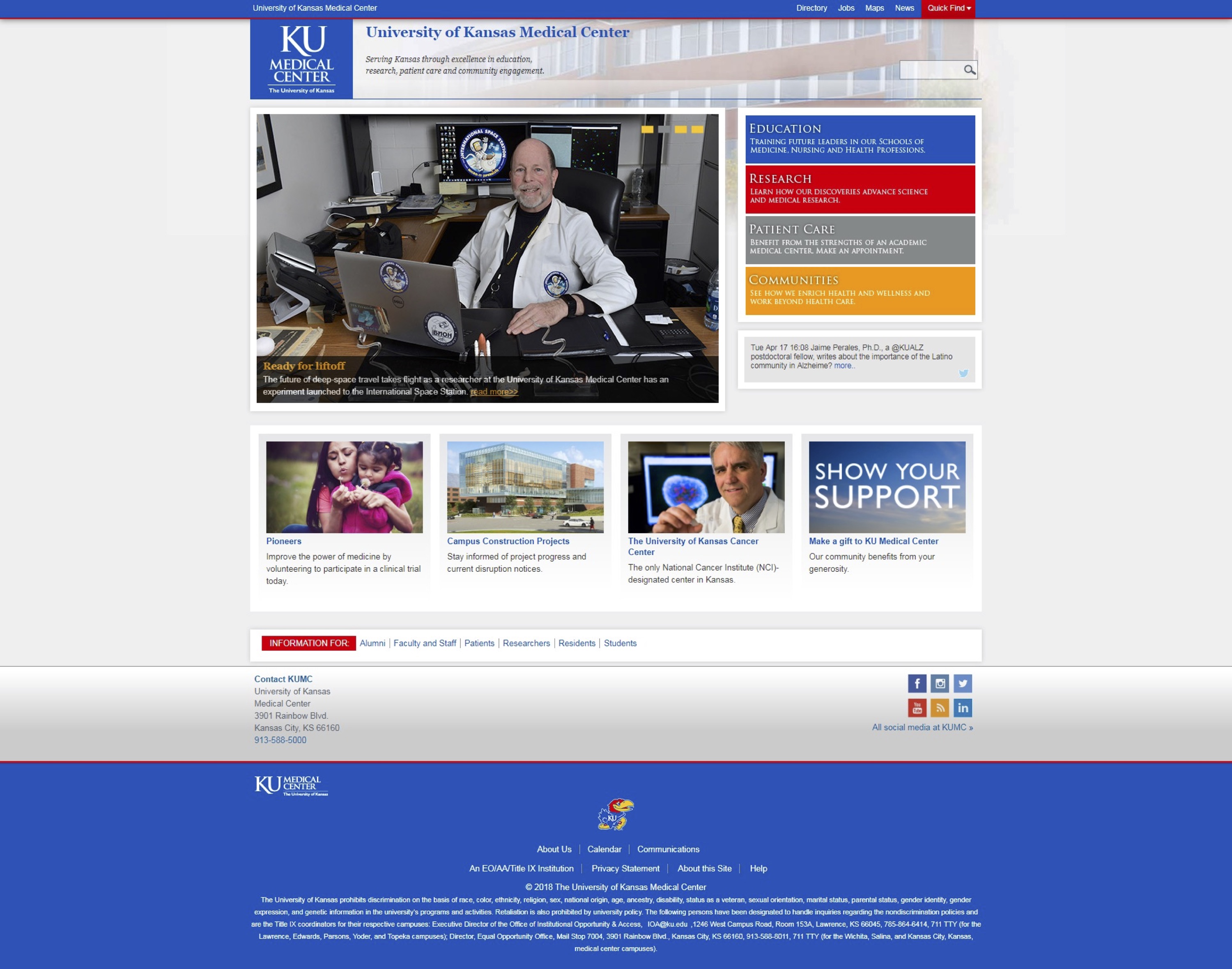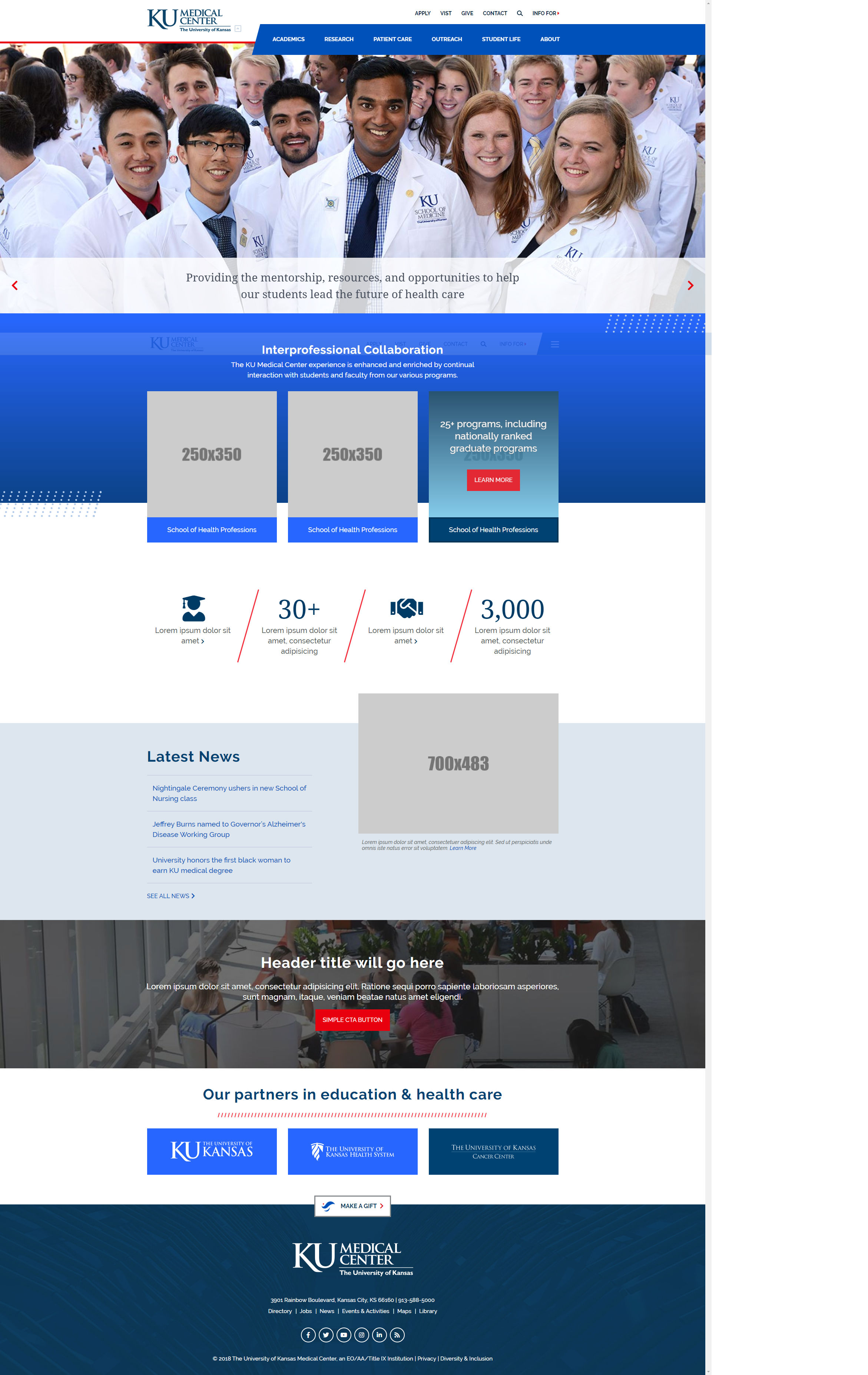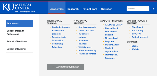 At the beginning of the KU Medical Center web redesign project, the website focused on news, lacked a defined audience and didn’t offer clear paths to information. There were no site menus to navigate to specific pages, which required users to navigate several pages to find information.